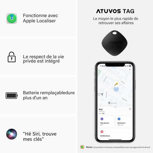 Key Finder Air Tag Traceur, Fonctionne Avec L’App Localiser Apple (Uniquement Ios), Batterie Remplaçable, Localisateurs D’Objets Bluetooth Tracker Pour Valises/Portefeuilles/Clés/Sacs, Noir